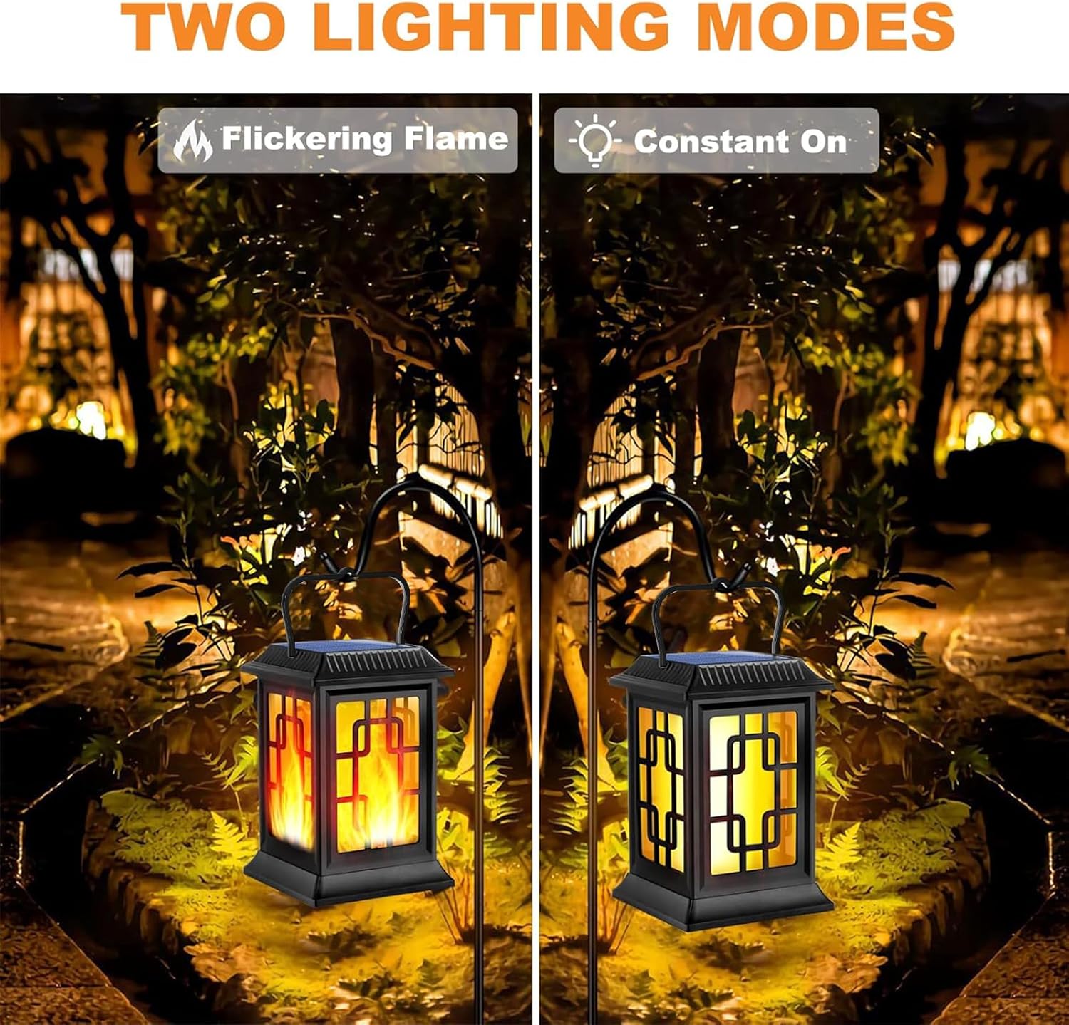Solar Lanterns Outdoor Waterproof Hanging Solar Lanterns Garden Lights Solar Powered Flame Lights LED Lights for Patio Pathway Deck Yard (2 Pack)